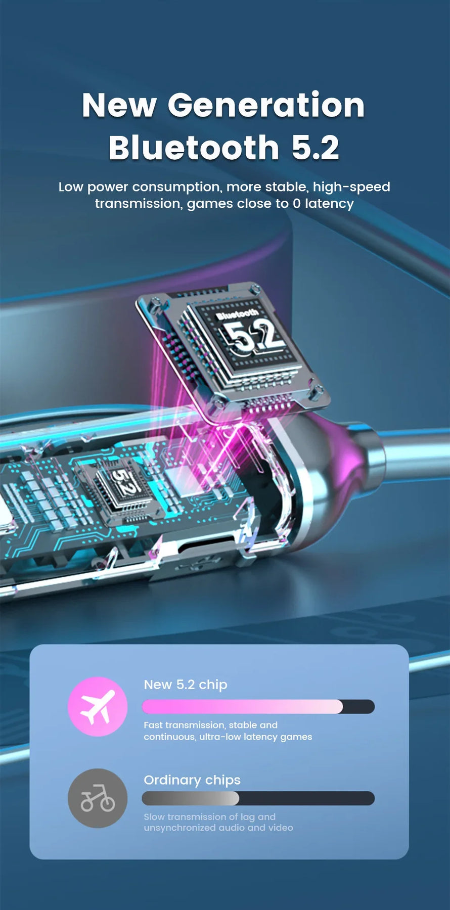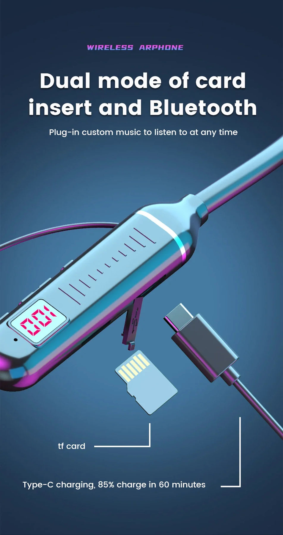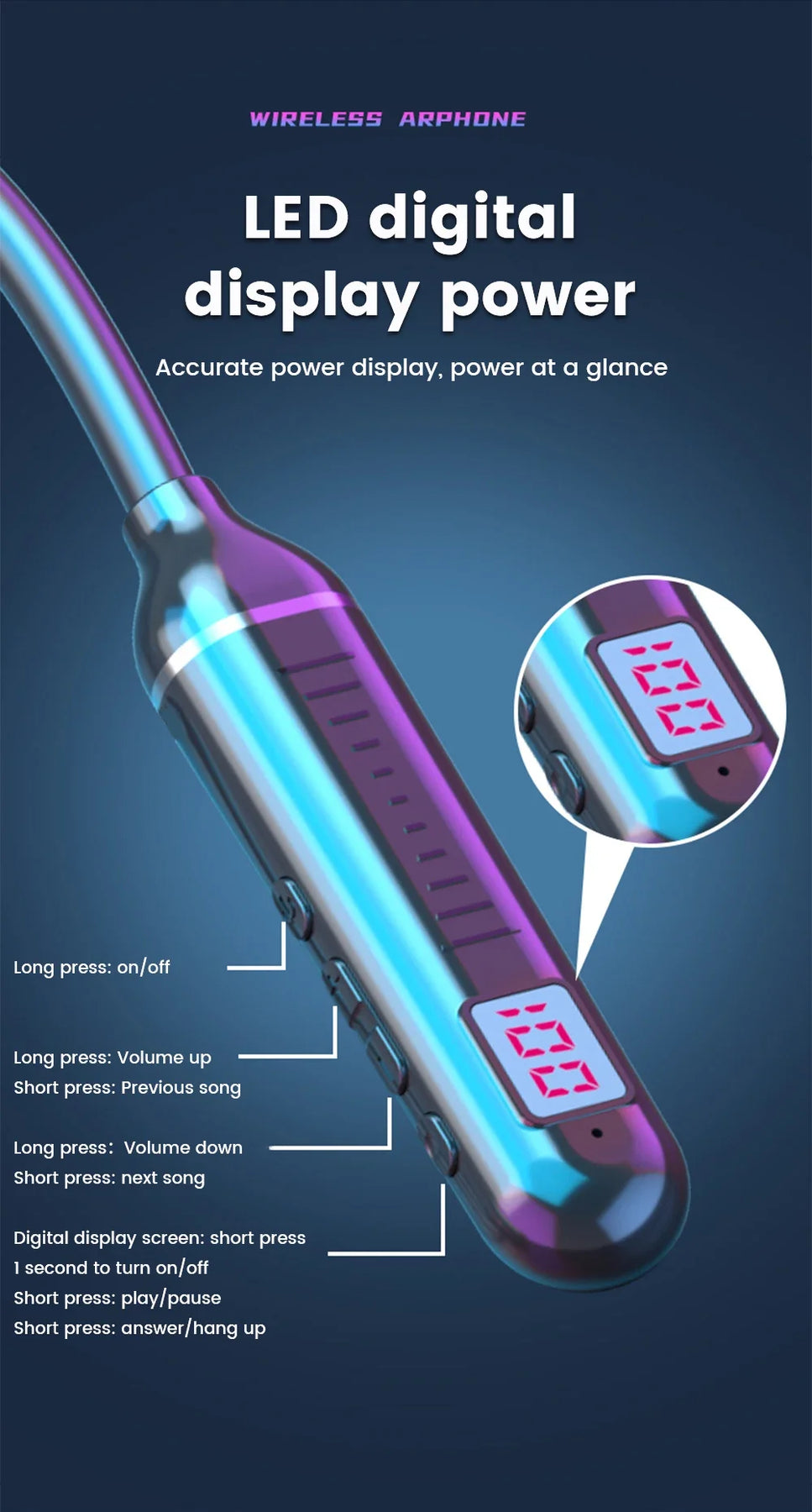 Wireless Earphones 5.3 Neckband Headphones Gaming